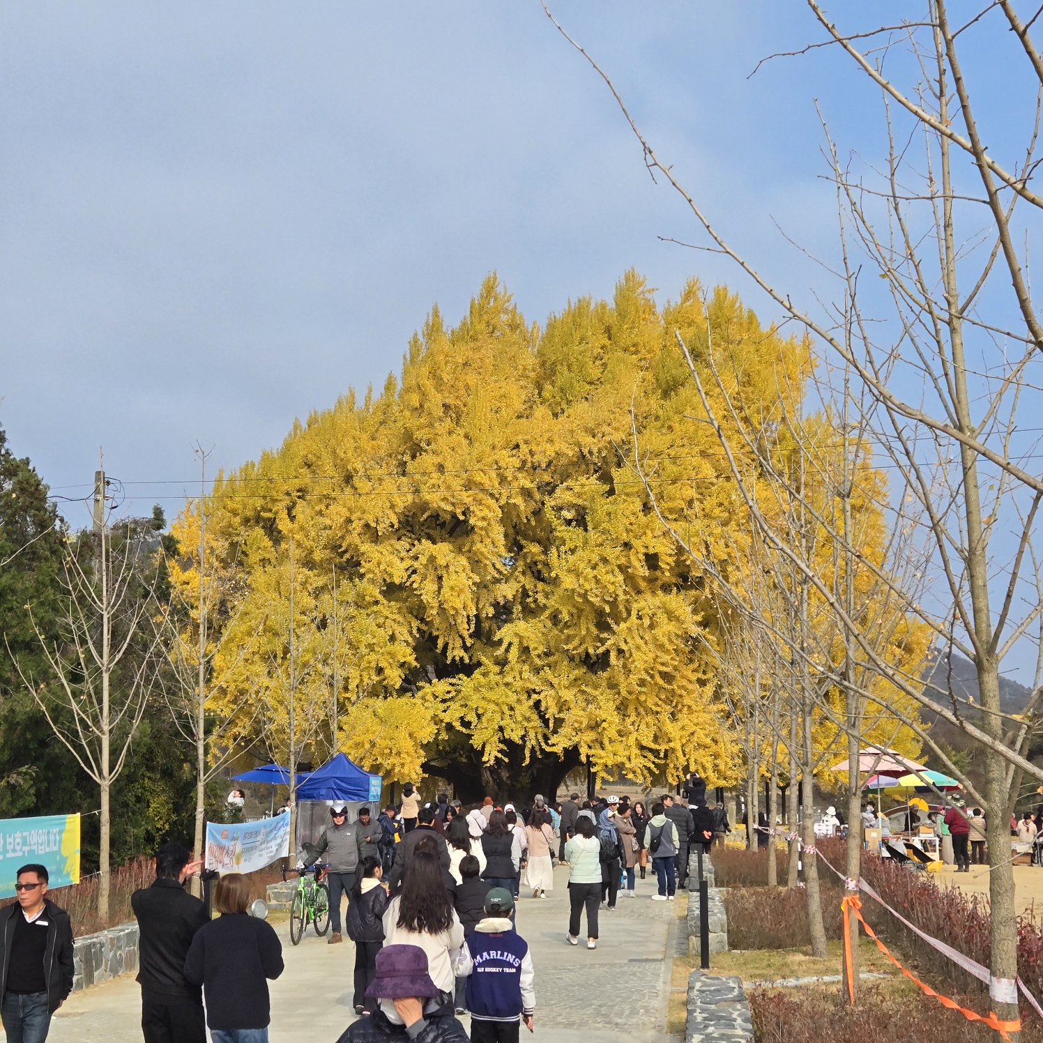 보시는 풍경처럼. 반계리 은행나무는 지금! 이 절정입니다. 사람이 많아서 은행나무 앞에서 사진 찍기가 불편하지 않냐고요? 아니요. 은행나무가 너무 커서 그런지 사진 찍는데 어려움이 없었어요. 사람이 아무리 많아도 나 혼자 있는 듯. (실제는 주변에 사람 많음) 독사진 찍는데 어려움이 없습니다.