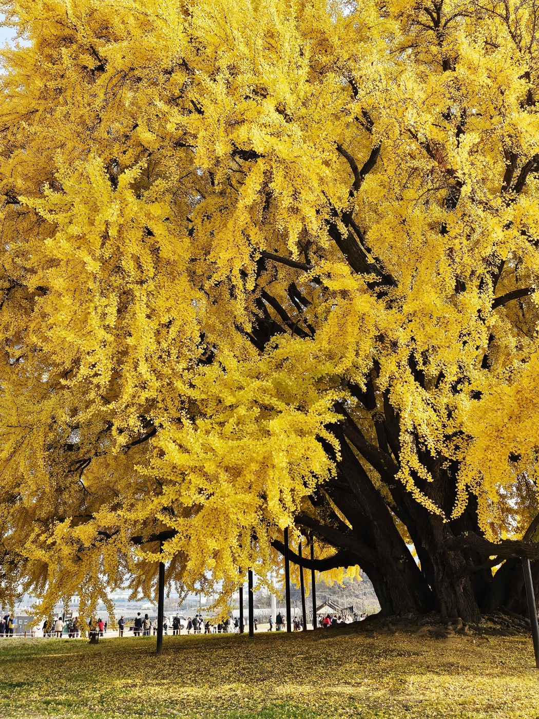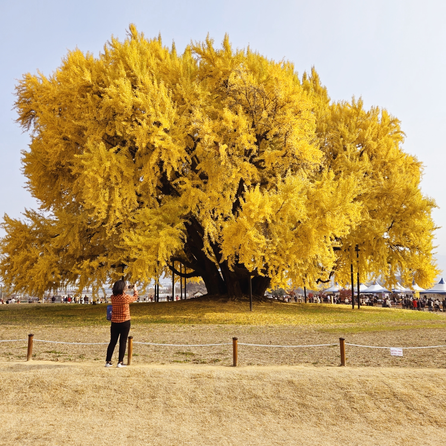 일찍 아침부터 서둘러서 방문한 사람들이 아주 많았습니다. 다들 천년이상 된 은행나무와 사진찍기 바빠서 옆사람 뭐하는지 관심도 없어요. 오직 나와 은행나무 이렇게 둘뿐. 사진 찍느라 정신이 없습니다. 모두 멋진 은행나무에 마음을 뺏긴 듯했어요. 물론 저도 마찬가지였고요!