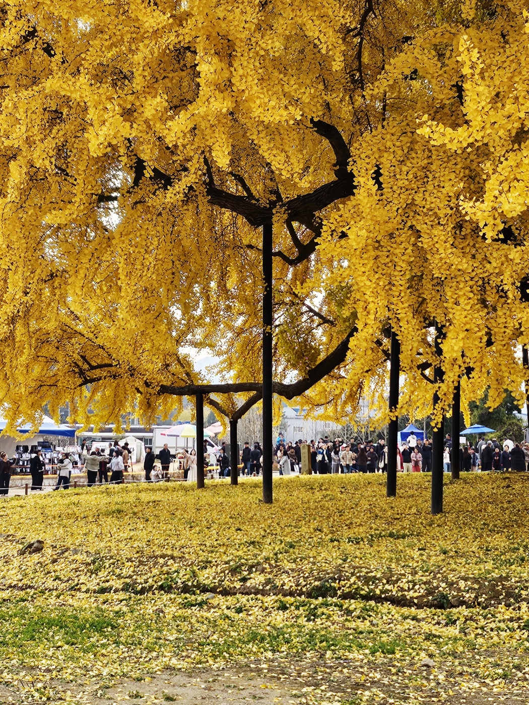 11월 13일 오늘 방문했을 때 은행나무는 절정입니다. 아주 노란 황금색으로 마치 축제분위기를 연출하는 것 같았어요. 이번 주까지는 아주 아름다운 모습을 볼 수 있을 거예요. 다음 주부터는 조금씩 은행잎들이 떨어지겠죠. 노란 은행잎들이 떨어지는 모습도 아름답겠죠?