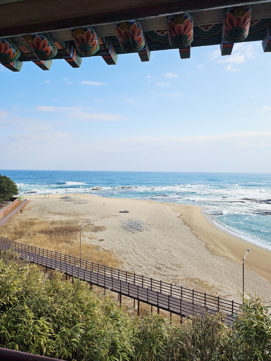 일행들이 제일 먼저 가보자고 추천한 곳이었던 고성 관동 8경의 하나인 청간정. 청간정에 오르기 전에 있는 주차장에 주차를 하고 주변을 둘러보다가 보이는 고성의 아침 바다뷰 멋지지 않나요?